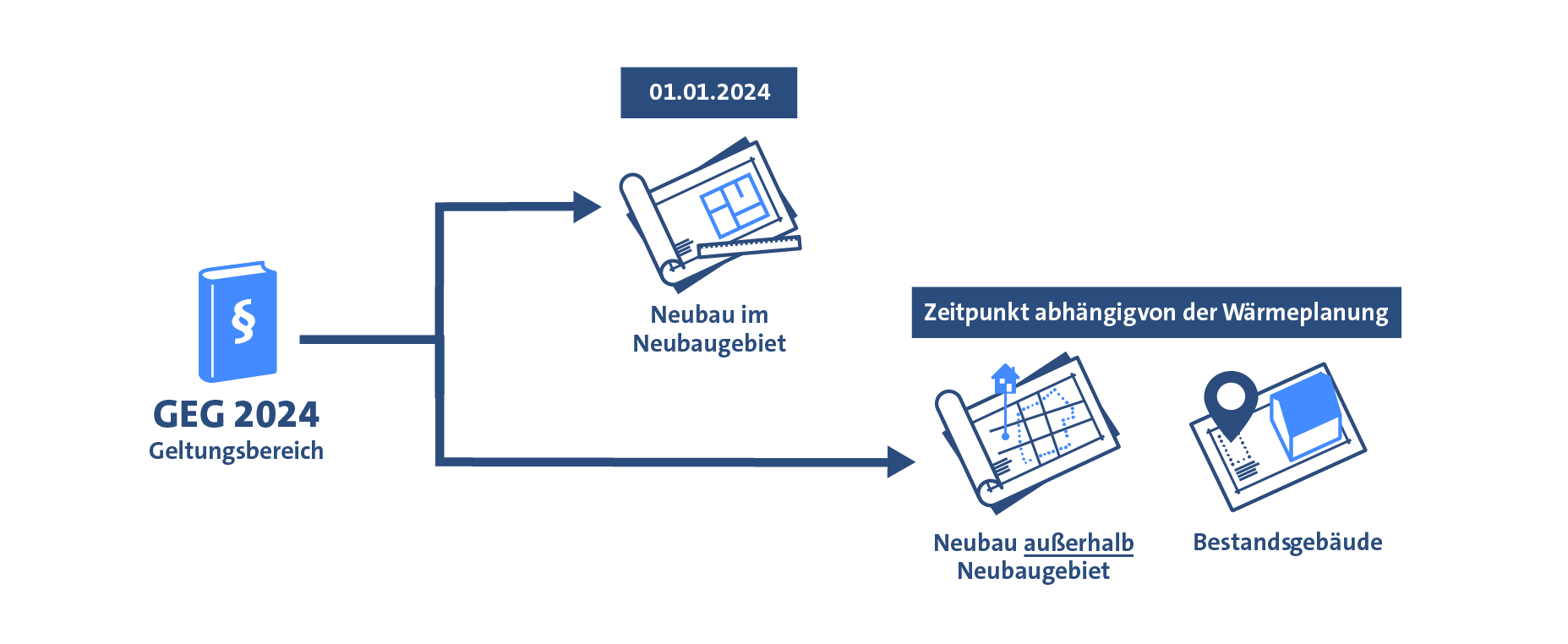 Liegt noch keine Kommunale Wärmeplanung vor, gelten verschiedene Fristen für den Einbau einer herkömmlichen Gasheizung (für Kommunen > 100.000 Einwohner vom 01.01.2024 bis 30.06.2026 | Kommunen < 100.000 Einwohner bis 30.06.2028).